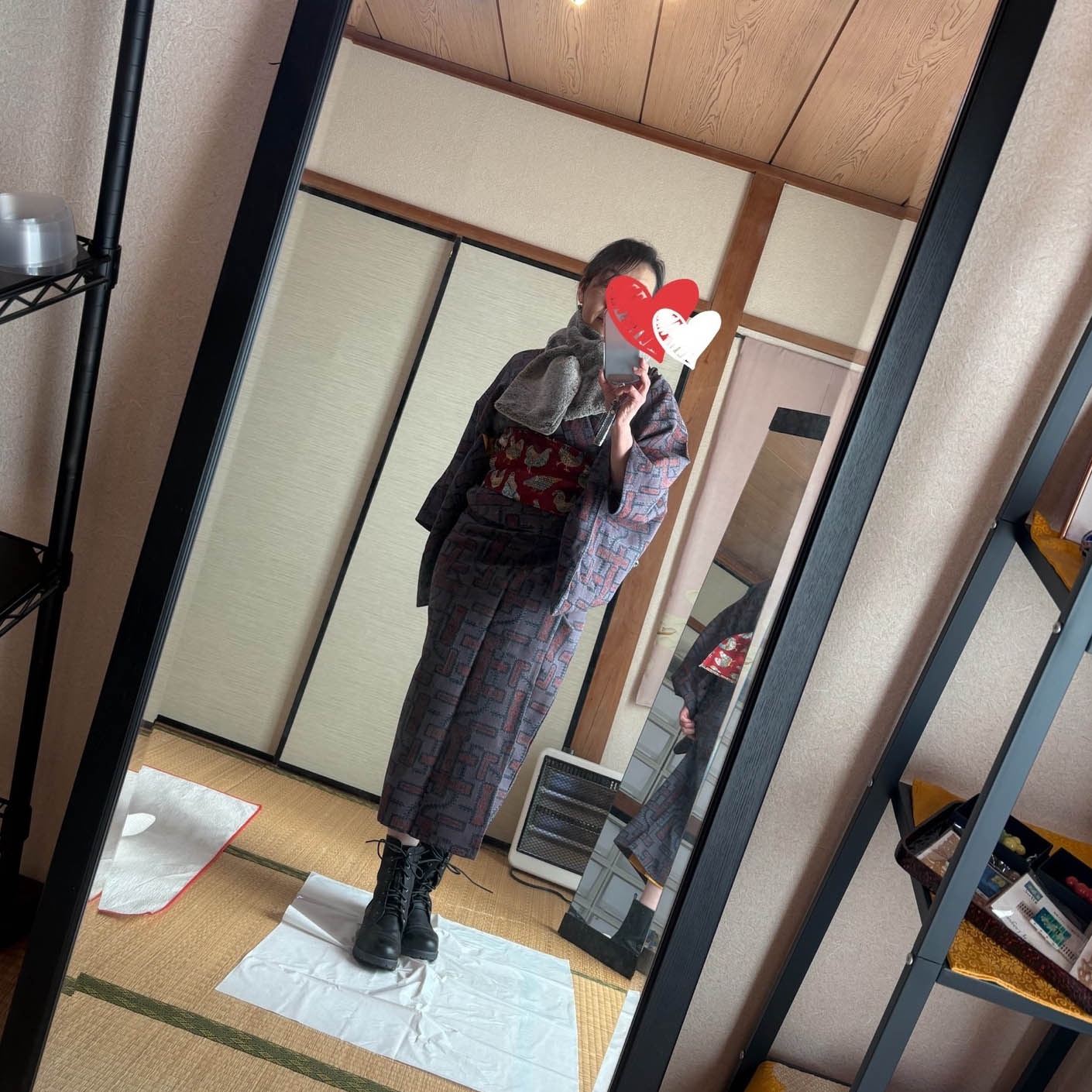 ブーツ選び、着物選び、小物選びで結構コーデの幅が広がります。