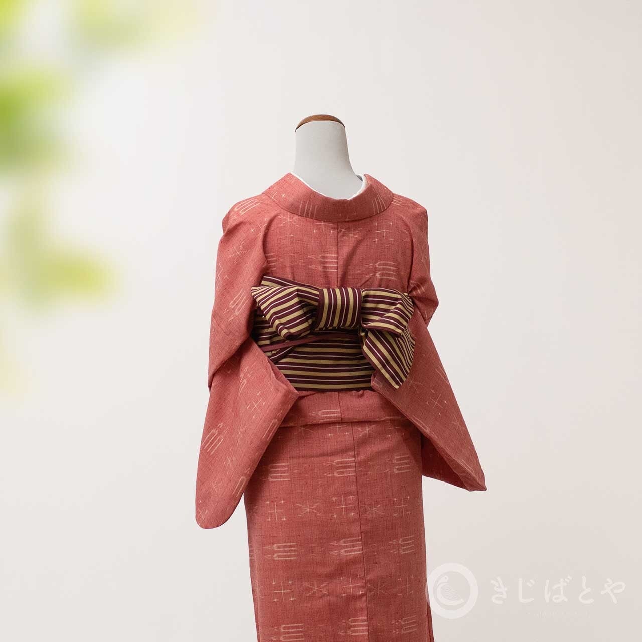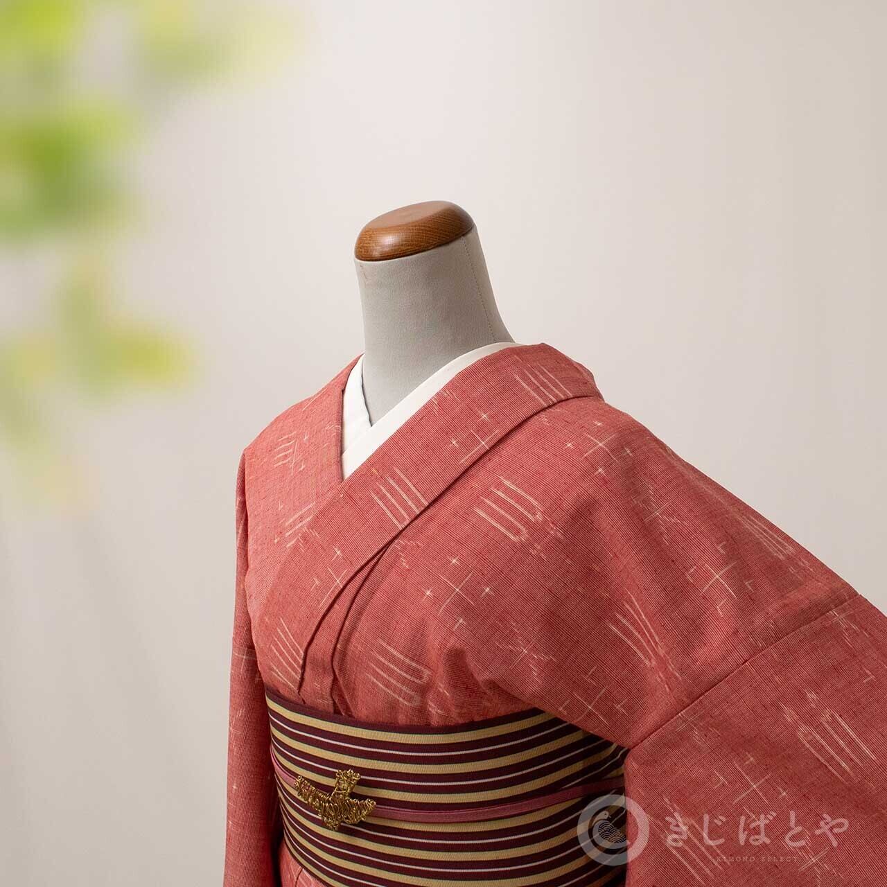 やわらかな陰影がかわいらしい、紬の単衣です。居敷あてはついておりません。