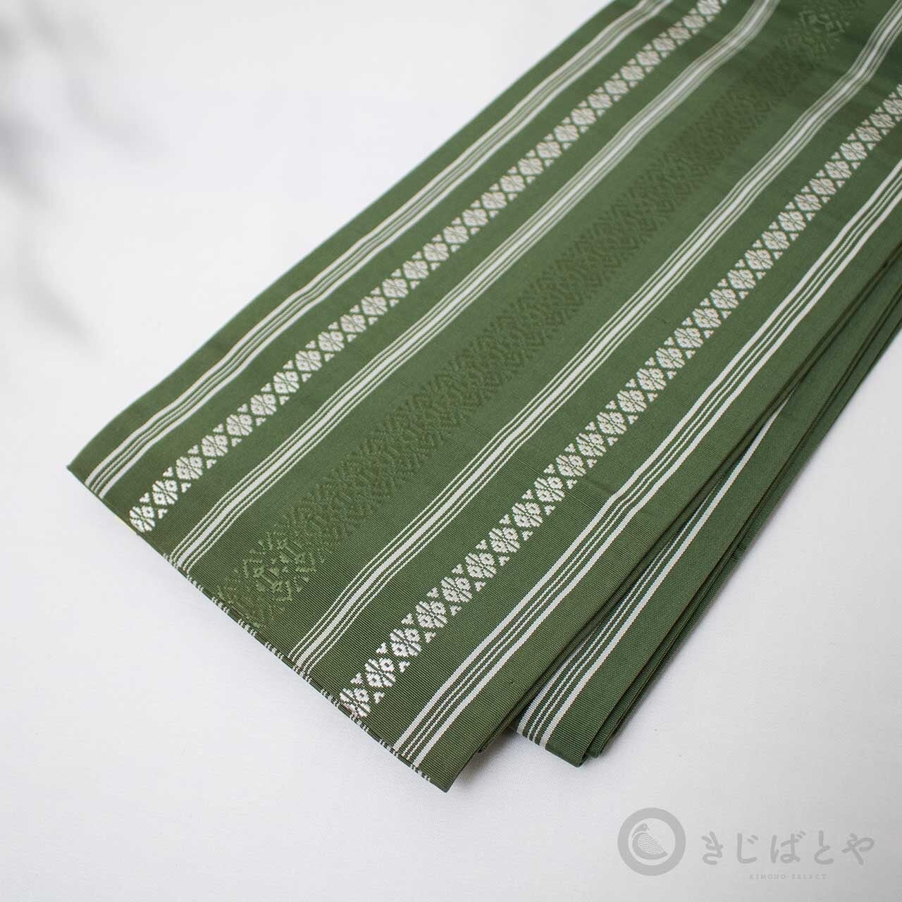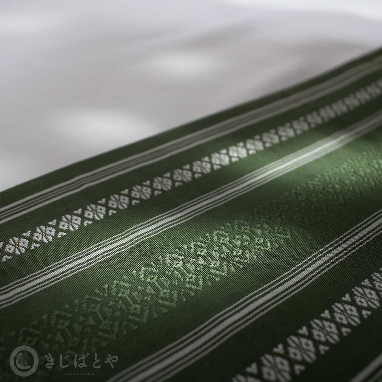 緑系の帯はあまり多くなく、その中でも状態がよくいい色となるとさらに数が少なくなります。こちらは状態も良く、いい色で、なかなか出会えない色かと思います。