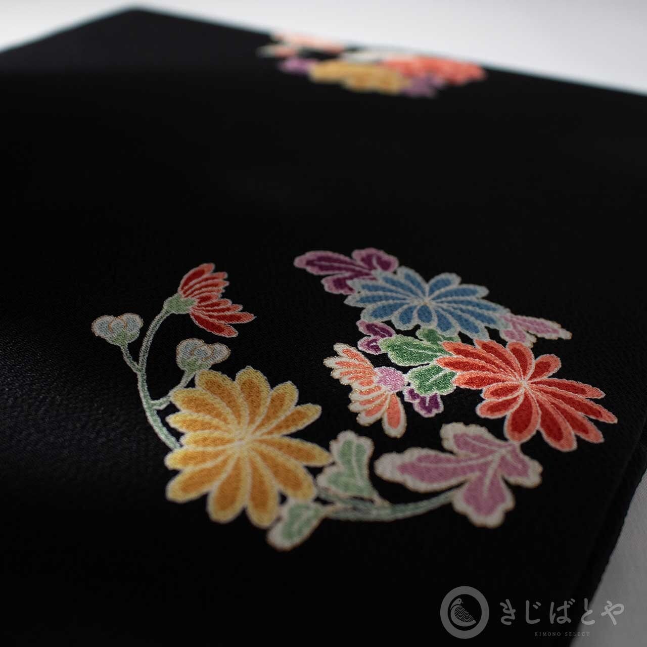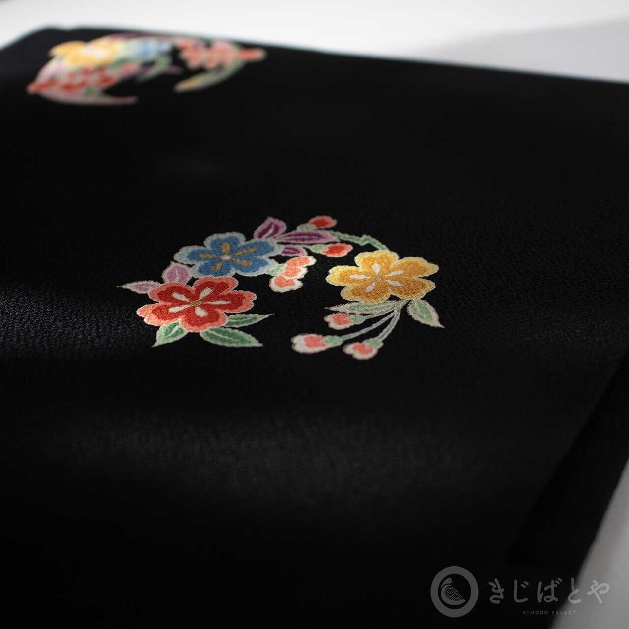 深い色に華紋がかわいらしい、ちりめんのなごやです。