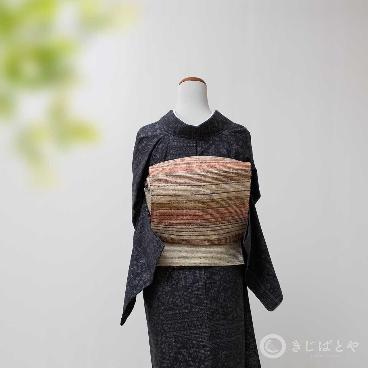 帯:正絹紬 虹色縞の織りのなごや(o25072931)