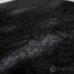 燻色地は藍鼠(あいねず:青みの暗い灰)より少し深い色で、結城紬特有の縦横に入る節と相まって、やわらかな陰影ができ、なんともやさしい風合いです。