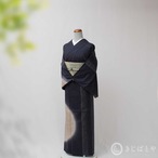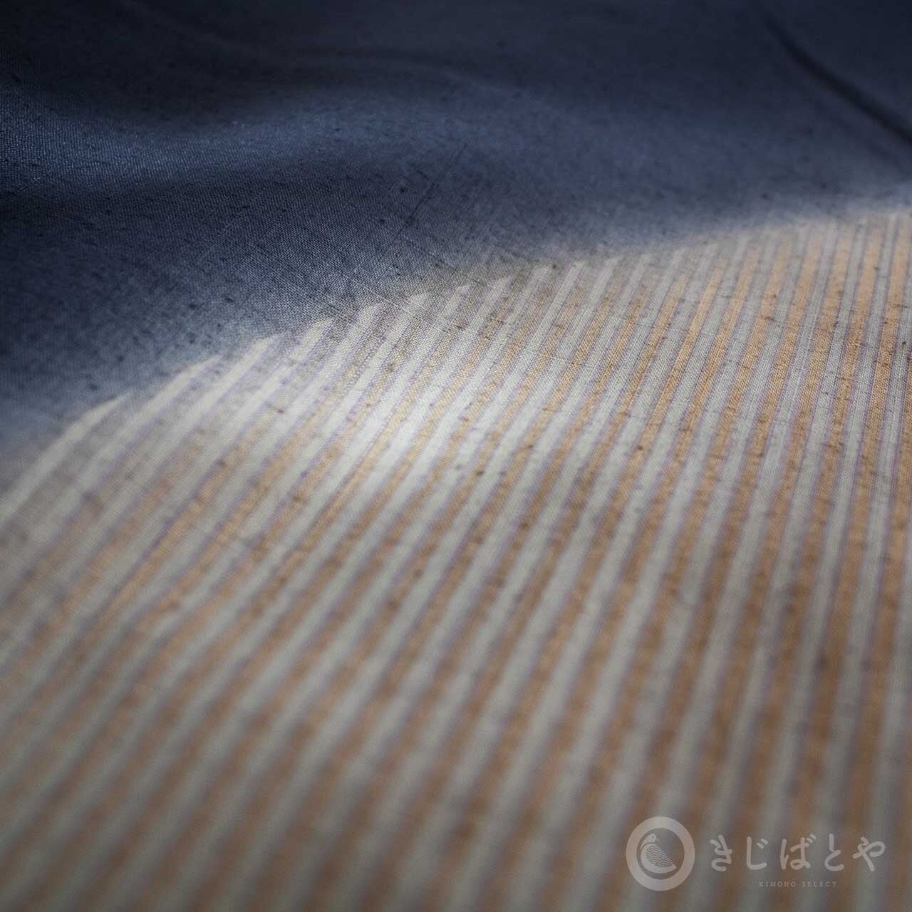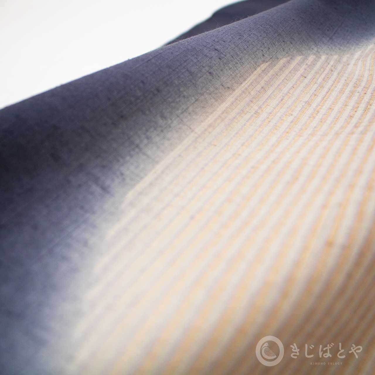 深い地にぼかしとあられ縞が美しい、結城紬の単衣です。