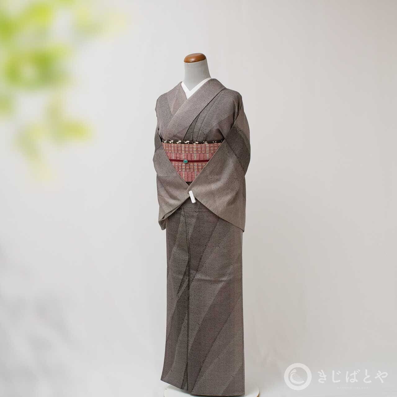季節を限定しない柄なので、春単衣でも秋単衣でもどちらでもお召しになれます。シンプルですが、とてもいい色みです。帯や小物で表情を変えられる、重宝する一枚になってくれそうです。おすすめです!
