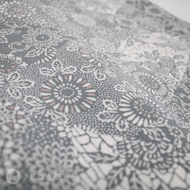 ちりめんのやわらかな生地感に、全体に細かにはいった総柄とで、やわらかな陰影ができ、なんとも美しいです。
