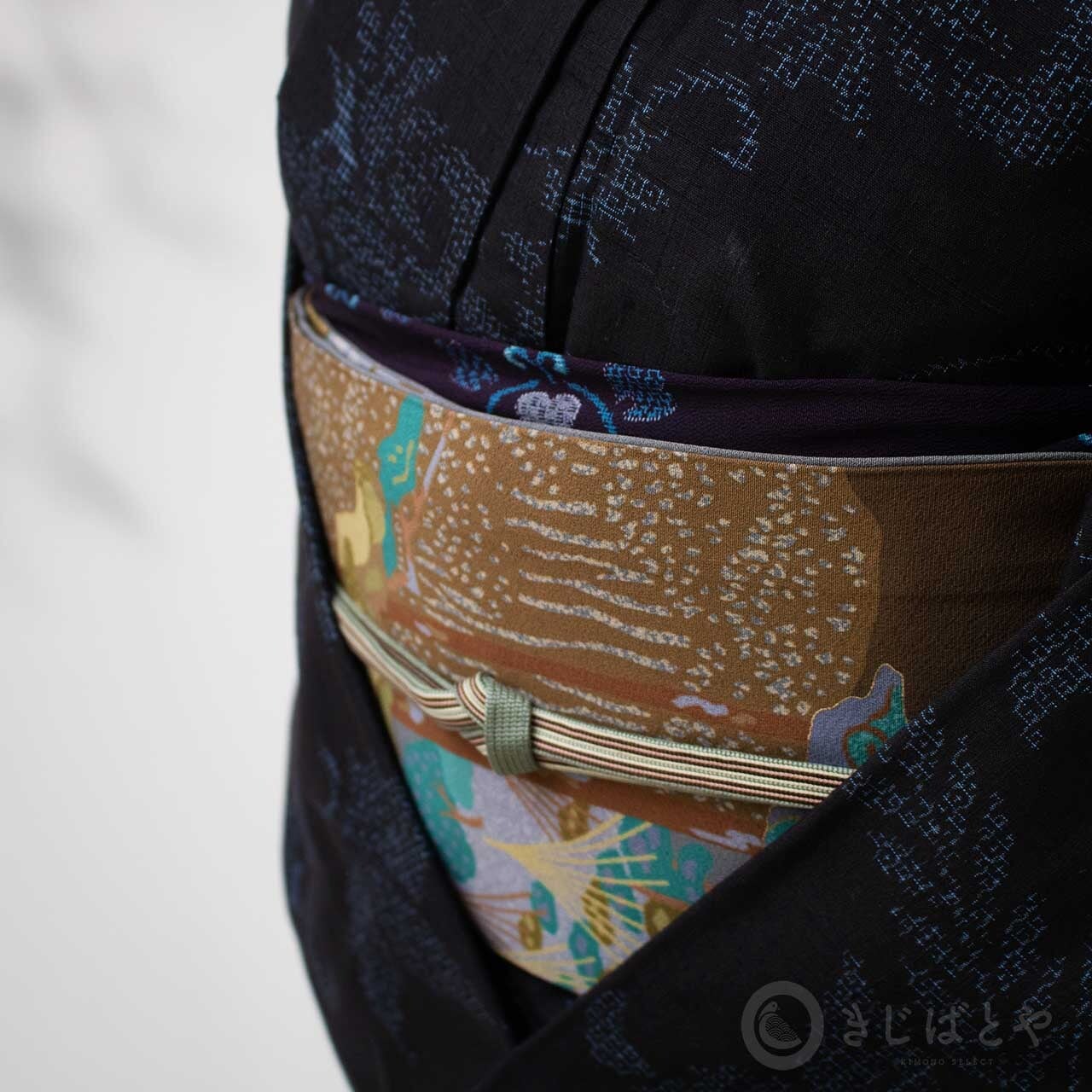 やわらかなのに適度な張りがあり、お太鼓のかたちも決まりやすいですし、全通柄なので柄だしもしやすく、とても使いやすい帯だと思います。