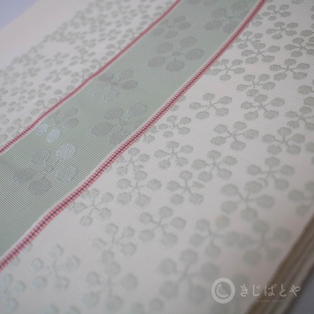 正絹博多帯 白地に青磁のなごや