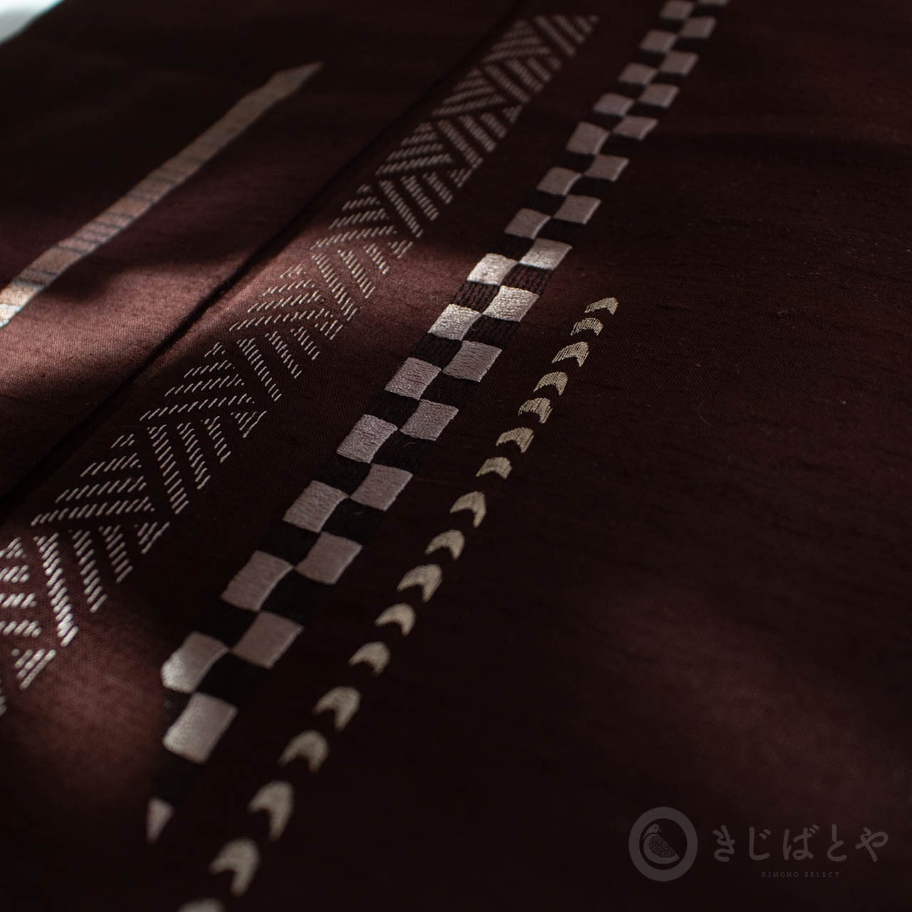 帯:正絹 豆殻茶と暗鳶の刺繍のなごや(o24101832)