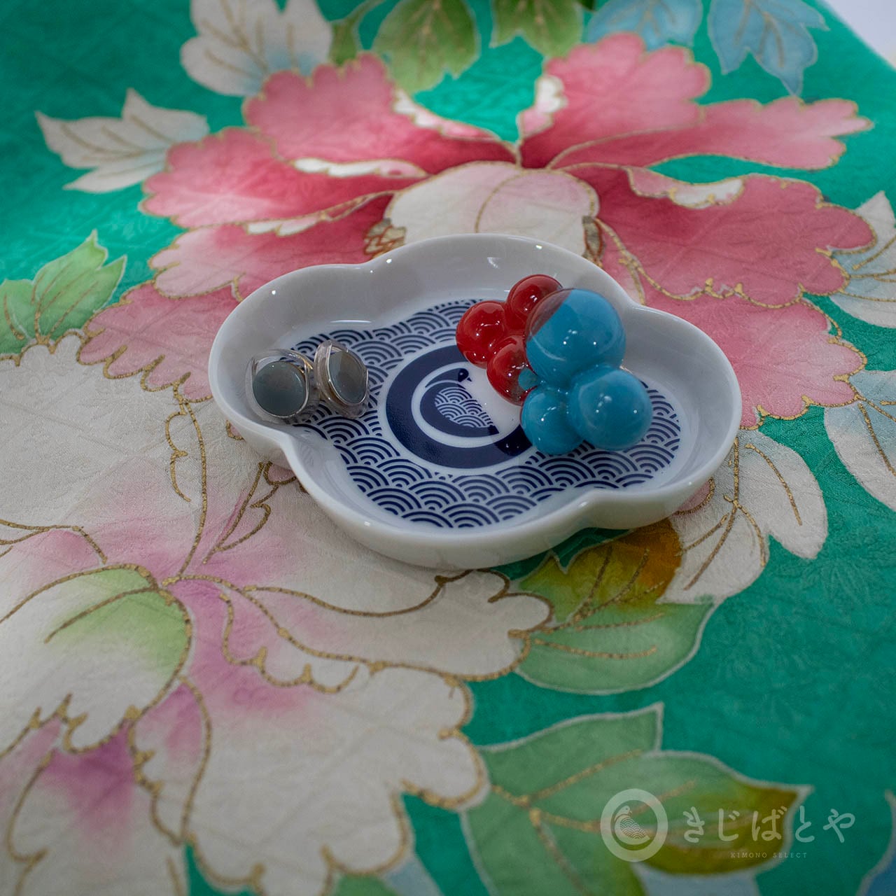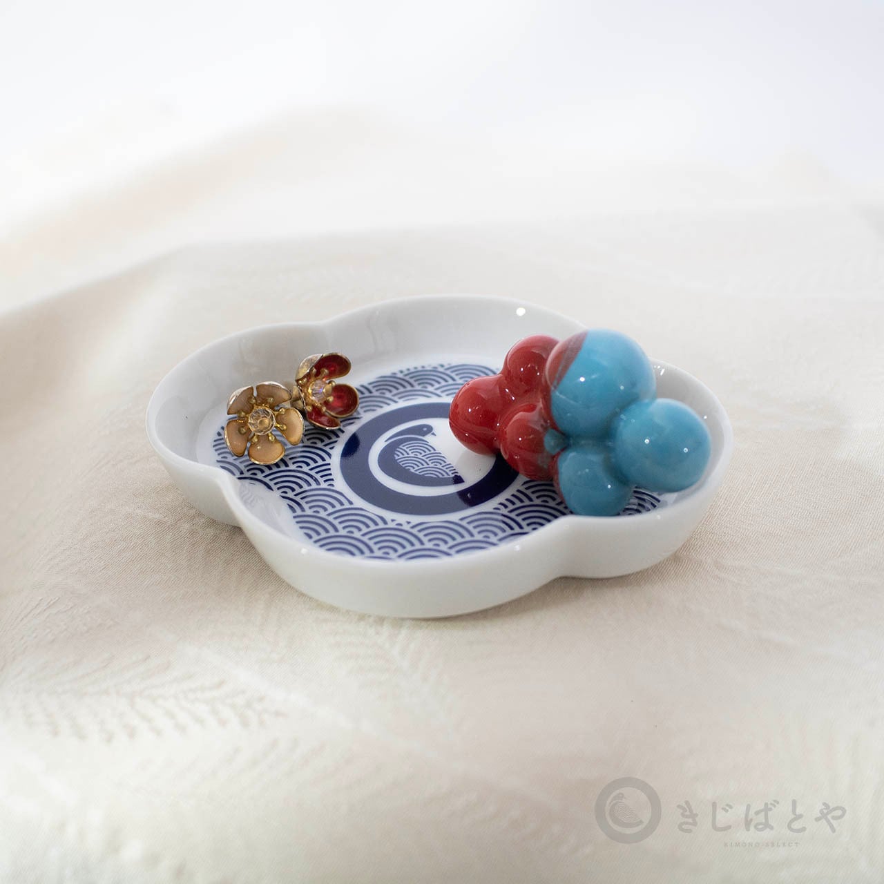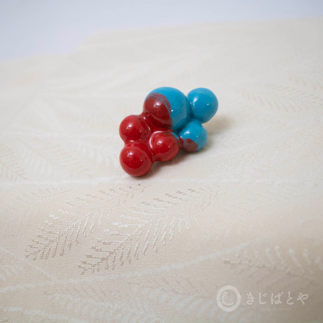 泡のようなお団子のような、ふしぎなかたちと色がかわいらしい、陶器の帯留めです。