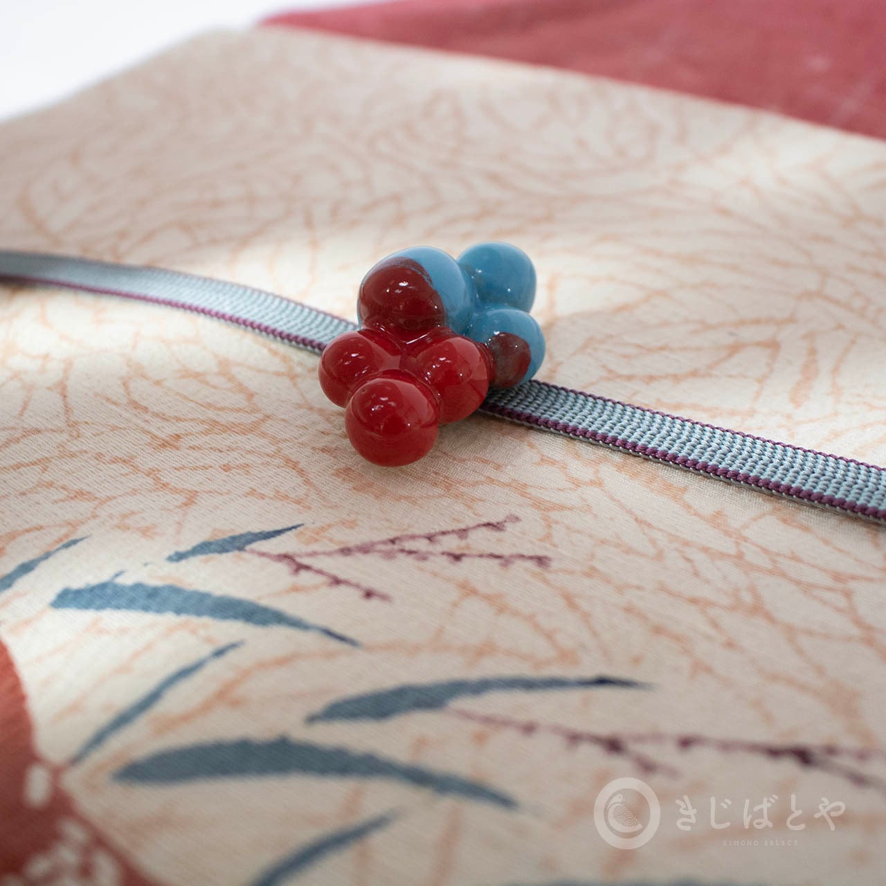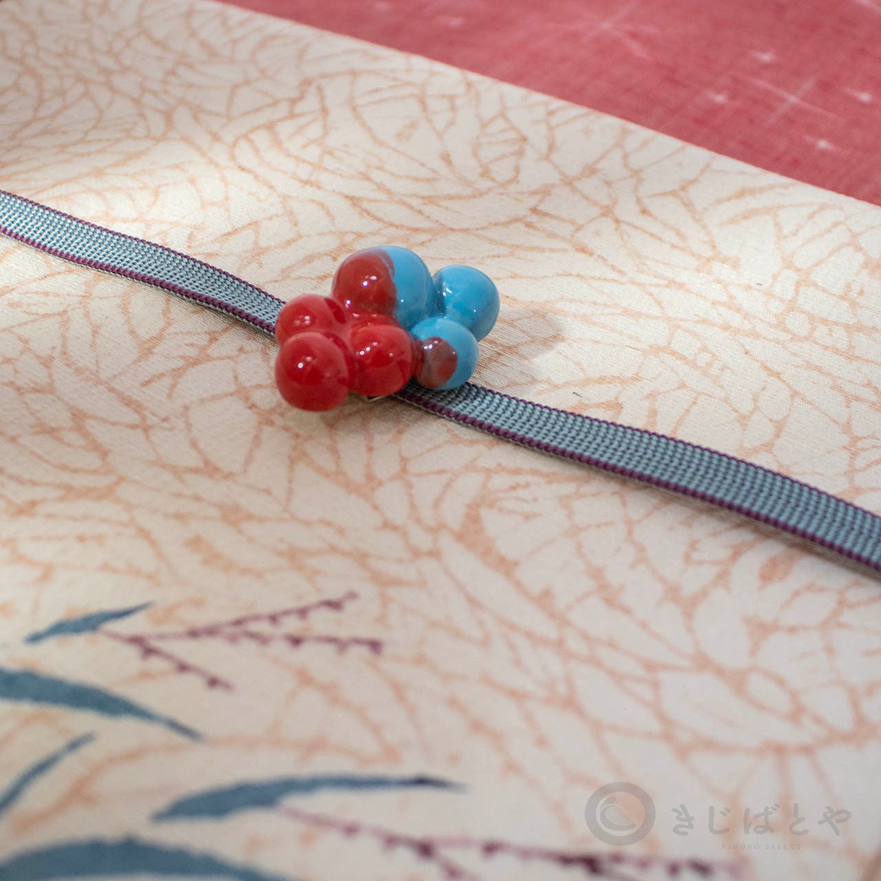 帯留めにはなかなかない動きのあるかたち、色。