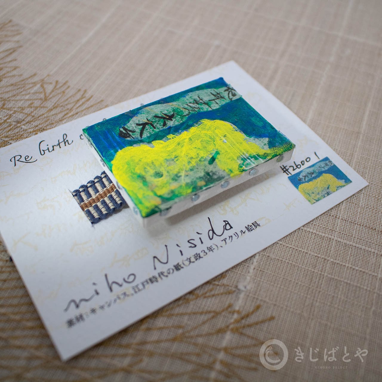西田美穂さんによる作品を、きじばとやのために帯留めにしていただきました。