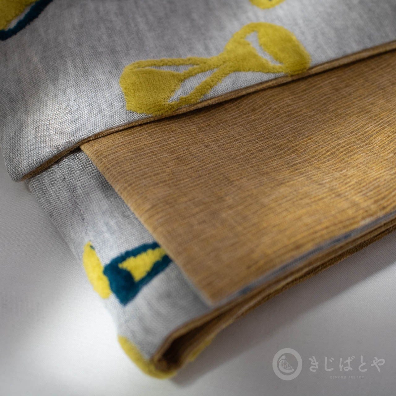 やわらかさを活かしてくしゅくしゅさせても、端を返して帯揚げ風に見せても・・・長さもありますし、やわらかいので途中でねじったりなど、さまざまにお楽しみいただけます。