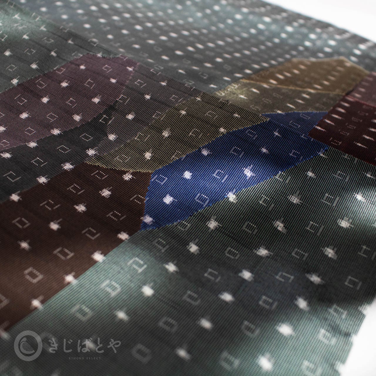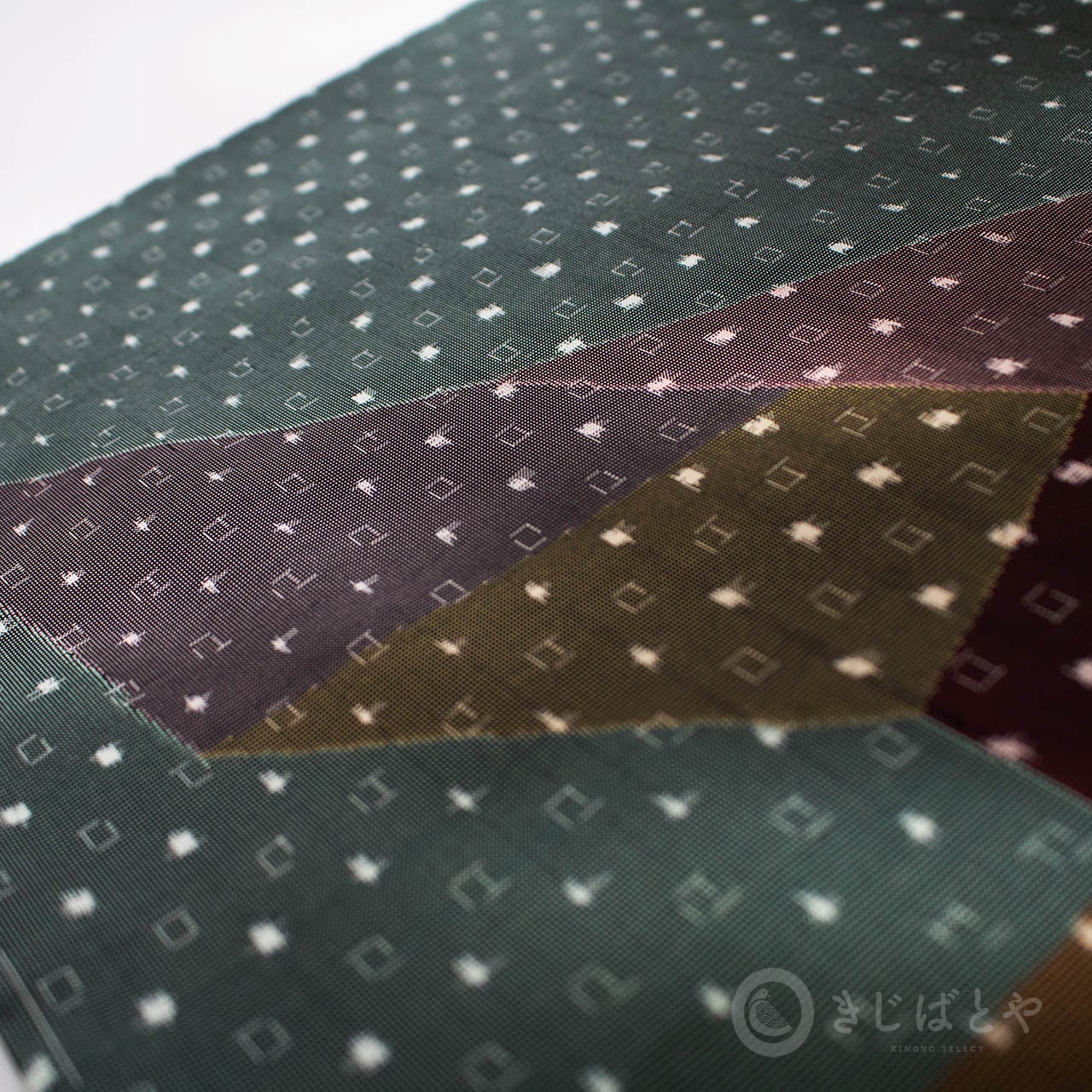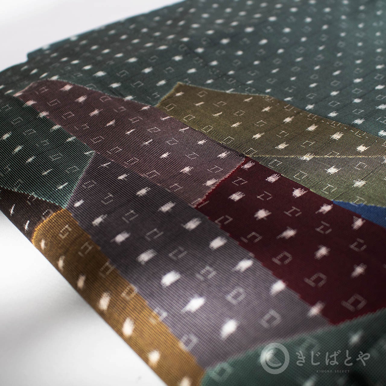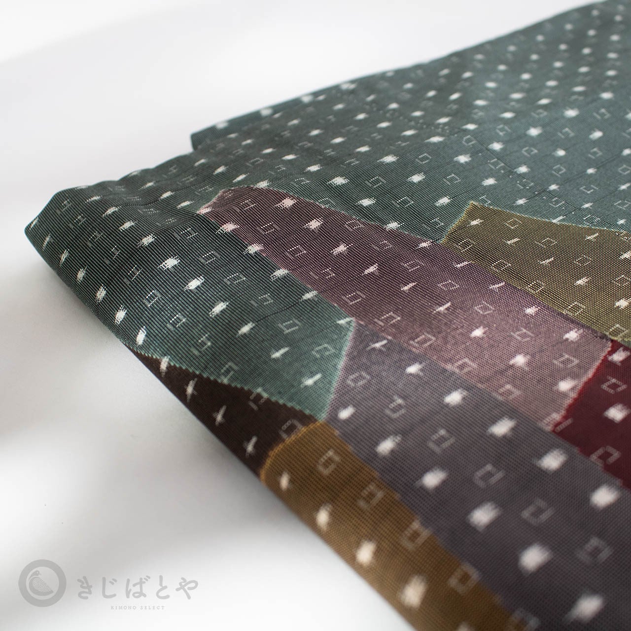 地は青漆(せいしつ:深く渋い緑)で、深くこくのある緑なのですが、織りのために少し白が混じったような、やわらかな深い緑の印象です。