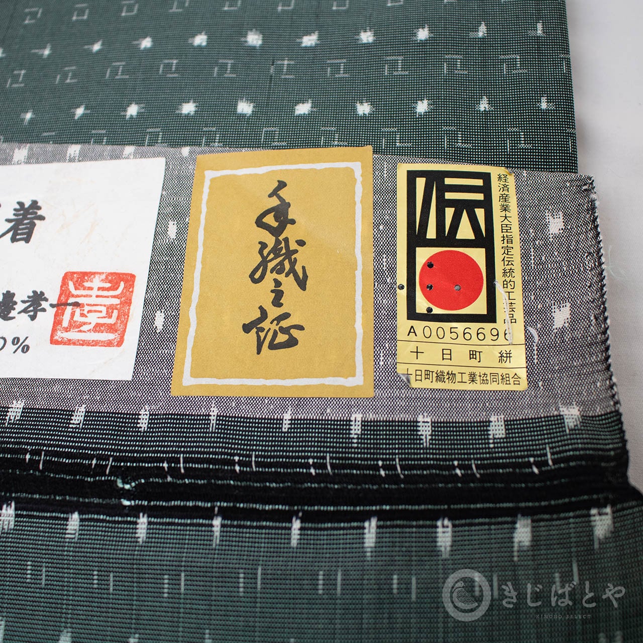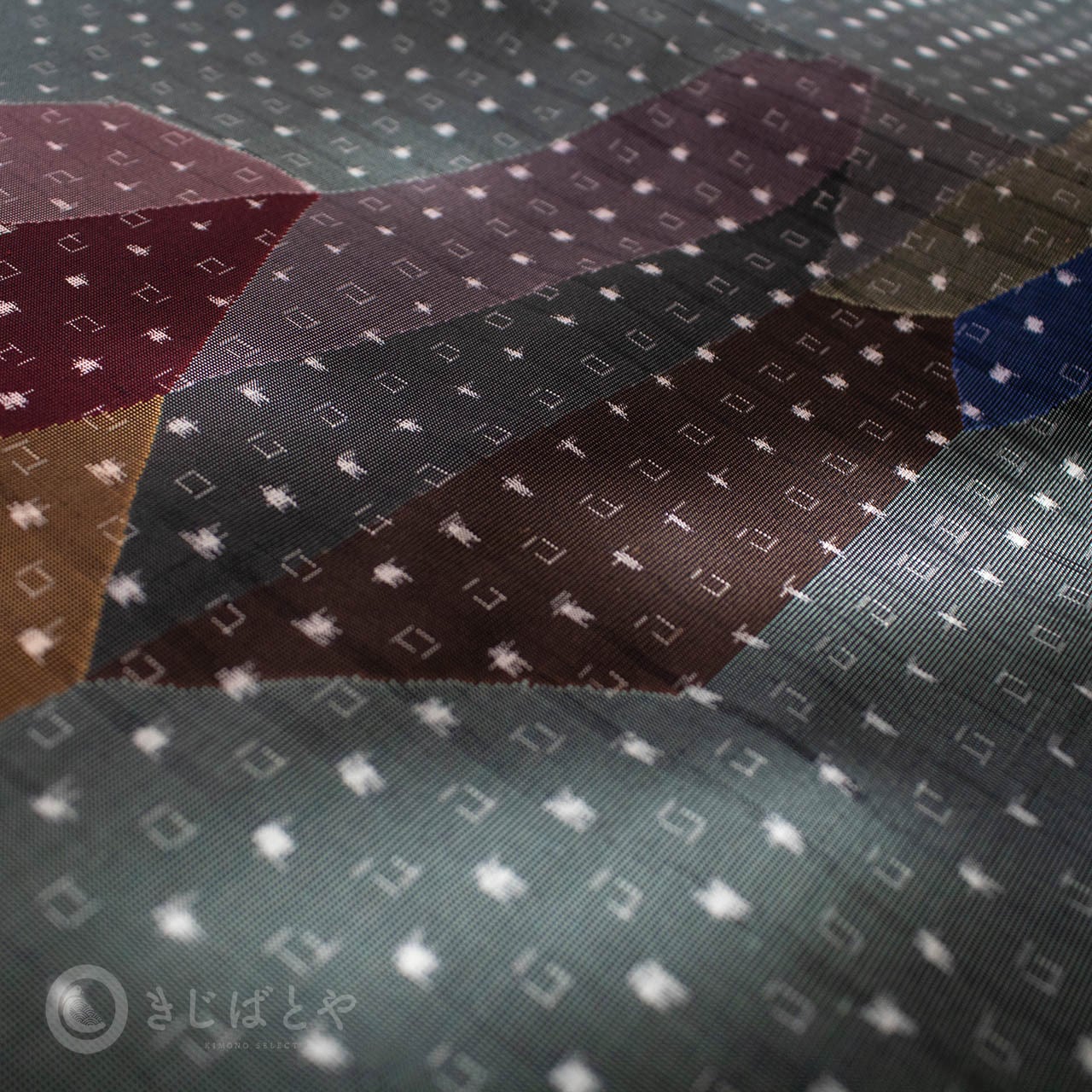 十日町紬特有のなめらかな光沢に、深い色と白く入った絣が本当に美しく、見ていて飽きることがありません。紬ですが十日町紬は細くしなやかな織りなので、気持ちよく体に添ってくれます。