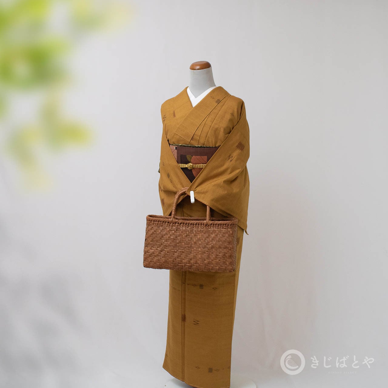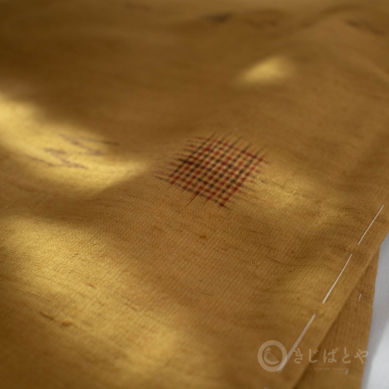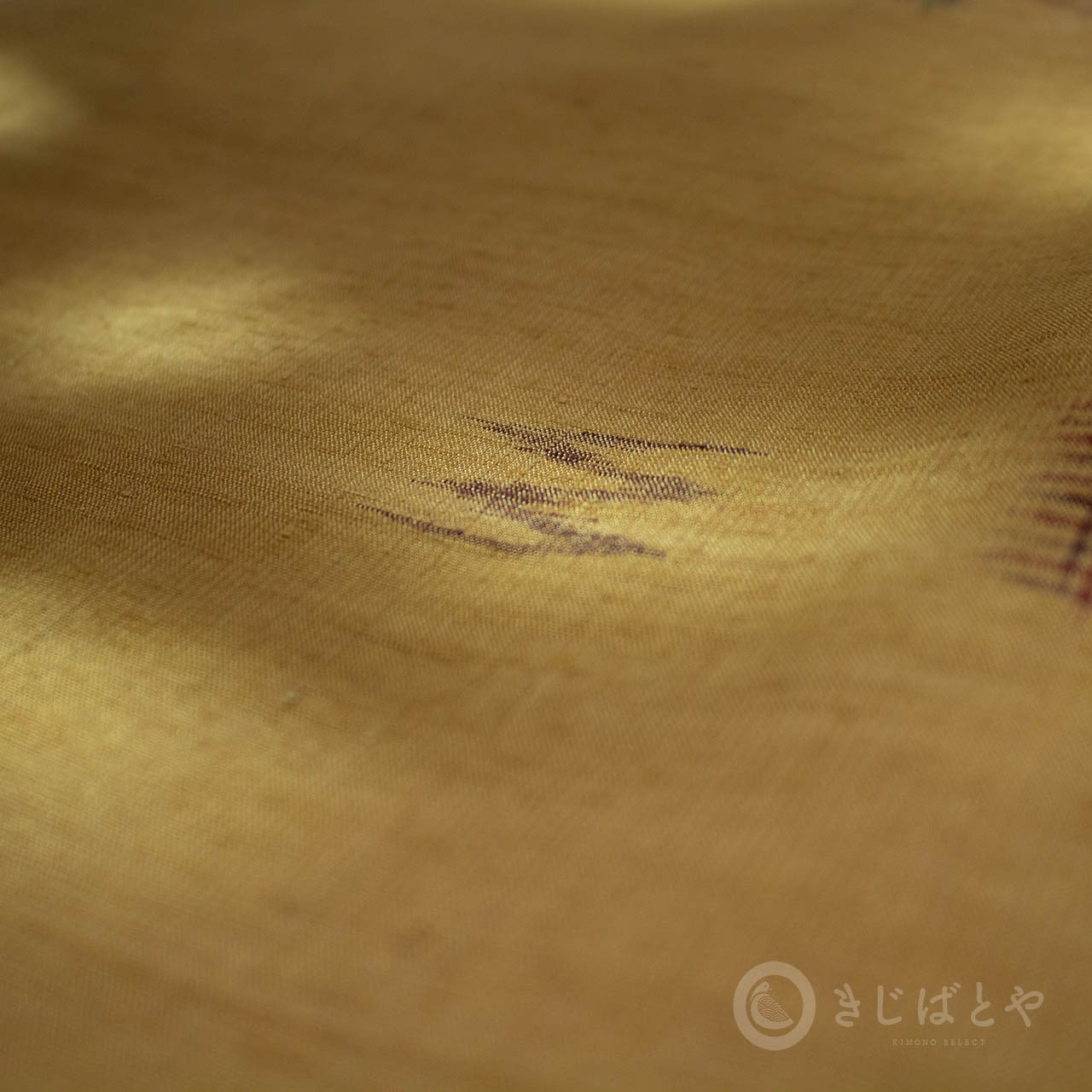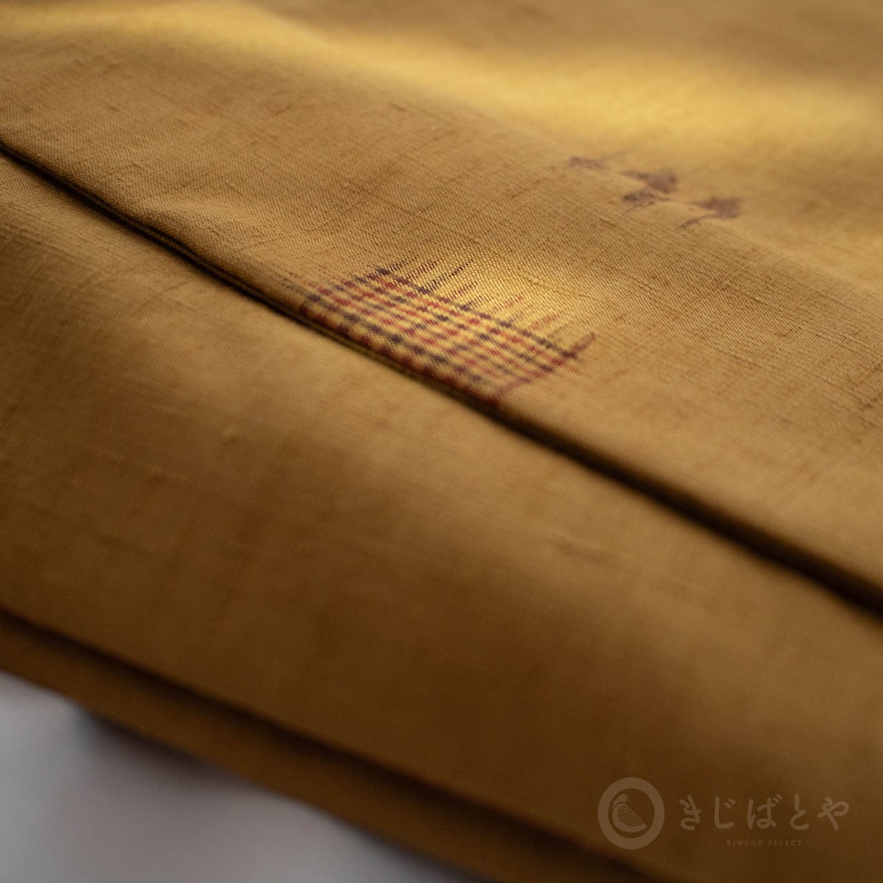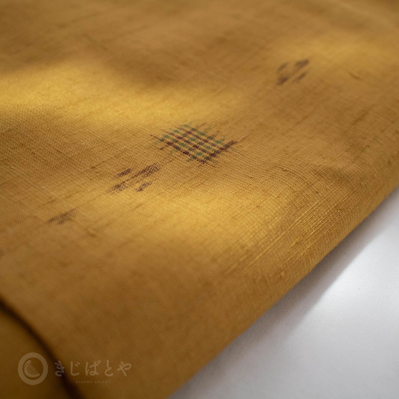 地は狐色(きつねいろ:強い橙)で、こくのある、赤みよりの深い黄色・・・というと近いでしょうか。少し渋みがある深くやわらかな色なので、とても肌うつりが良いです。