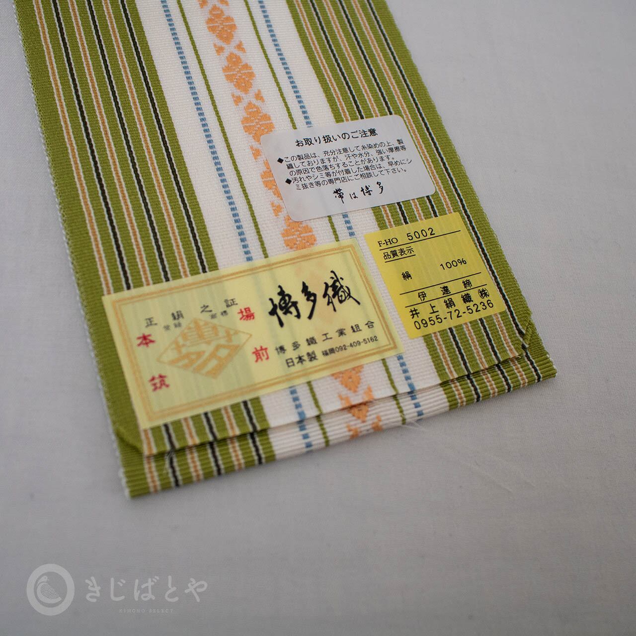 正絹 博多織の伊達締め 鶯