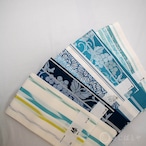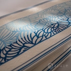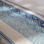 地は明るい白地で、藍、浅縹(あさきはなだ:明るい青)、白藍(しらきあい:淡い青緑)で