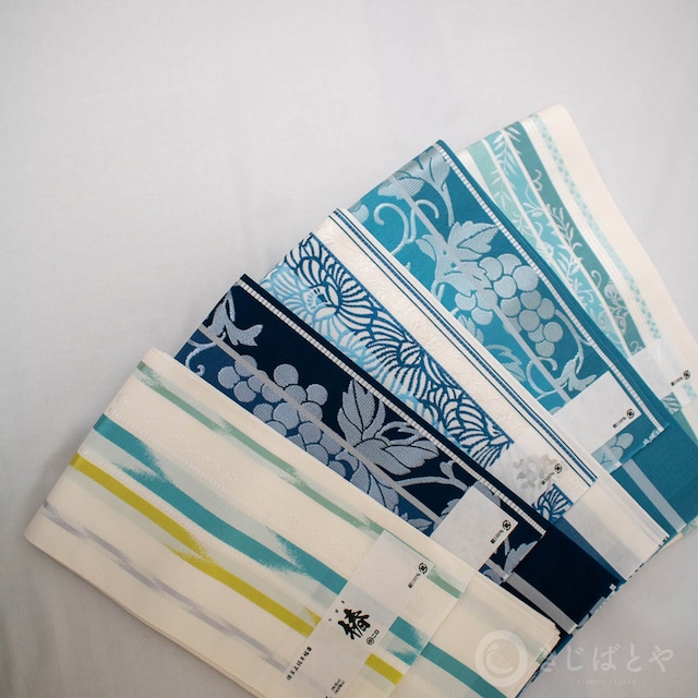 コロナ禍以降、絹の生産工場が激減し、数を減らしたシルクのほとんどがヨーロッパに流れるようになり、絹100%の帯の半幅帯は価格がかなり上がっており、数もとても少なくなっています。そのため、混紡の帯など、織元さんもとても工夫されています。