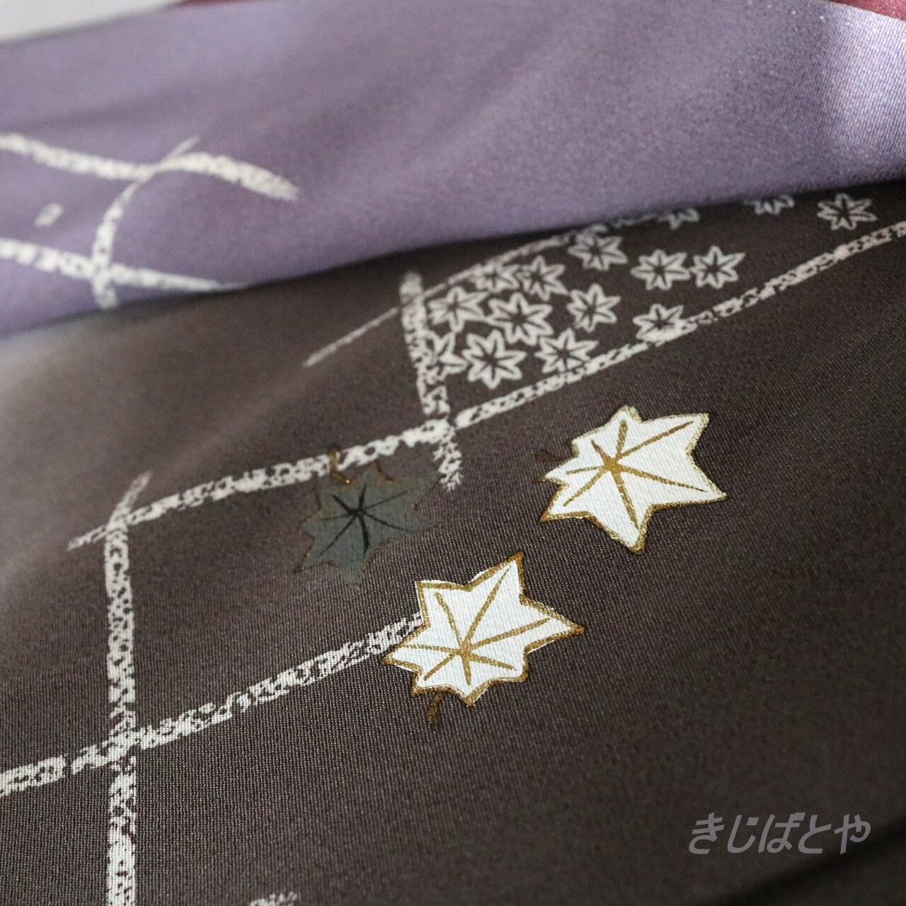 正絹ちりめん 墨色に楓や桜の付け下げ 袷