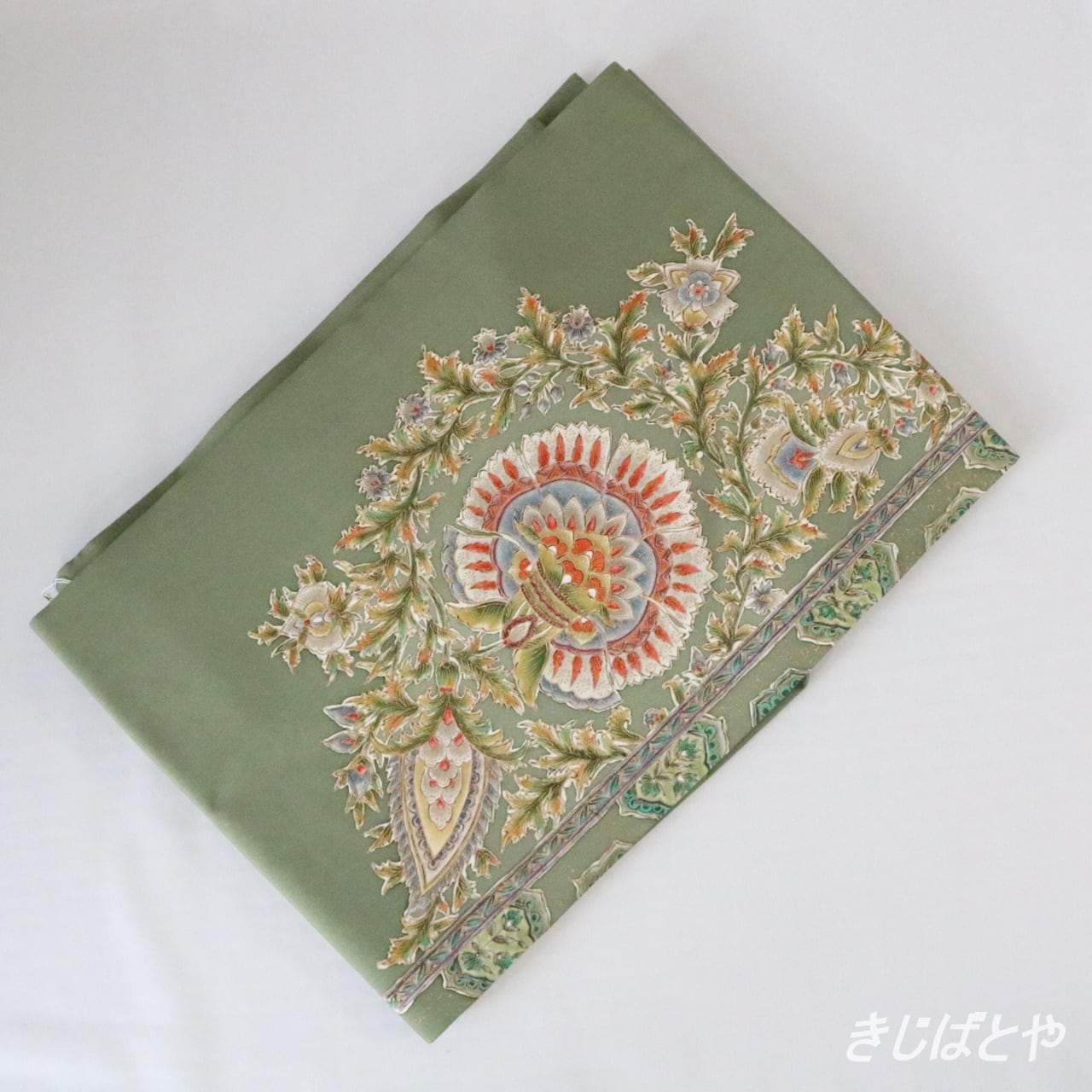 なんともいい色で、そこにエキゾチックな色使いの更紗柄が染められており、とても美しいです。