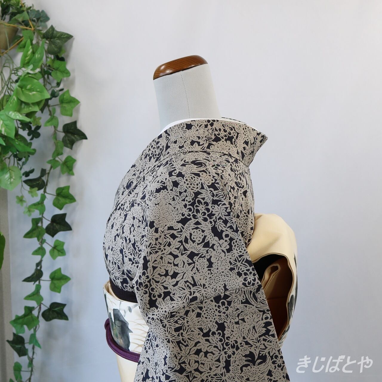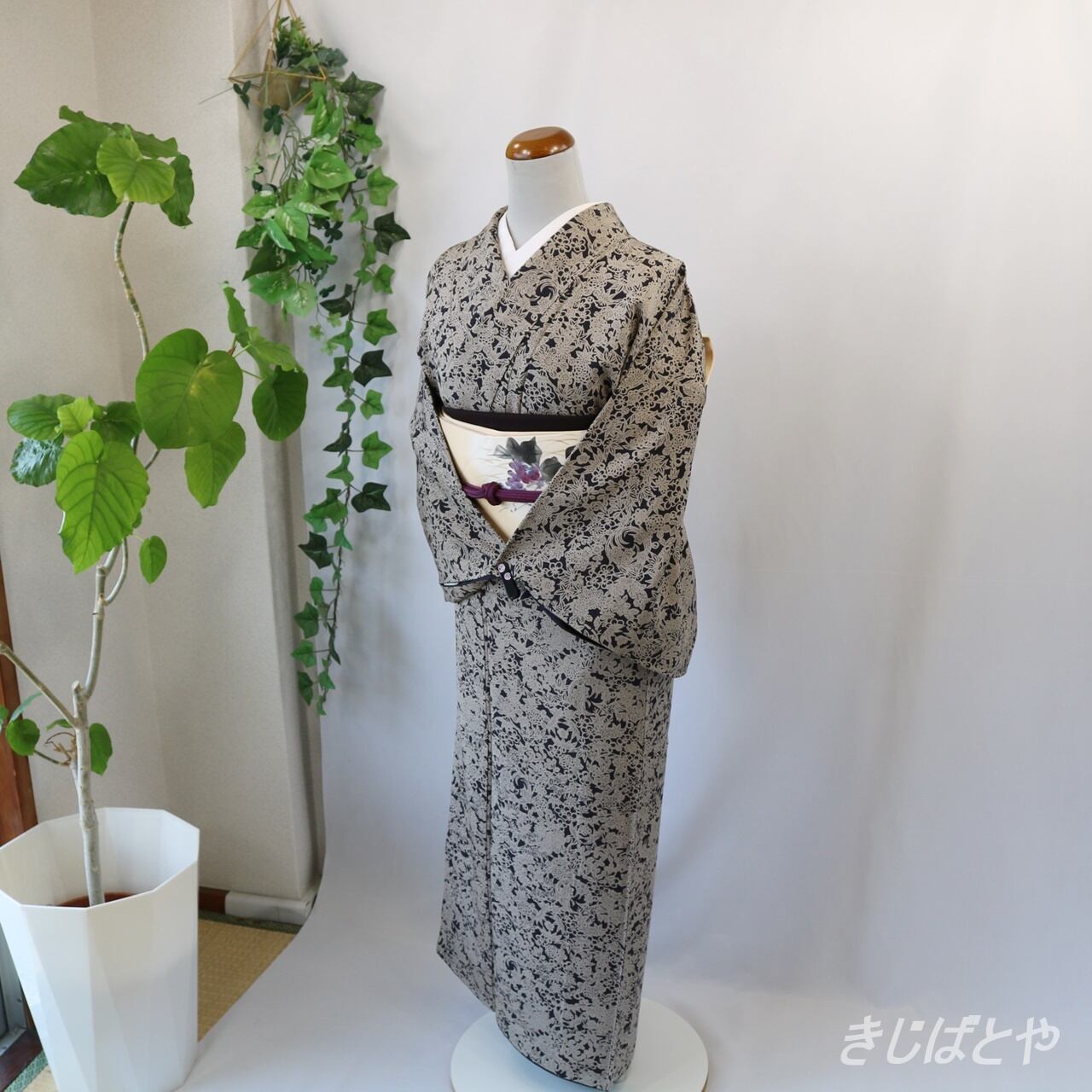 なかなかない色柄で、どこか上質なワンピースを思わせるような雰囲気もあります。とても素敵なお着物です。