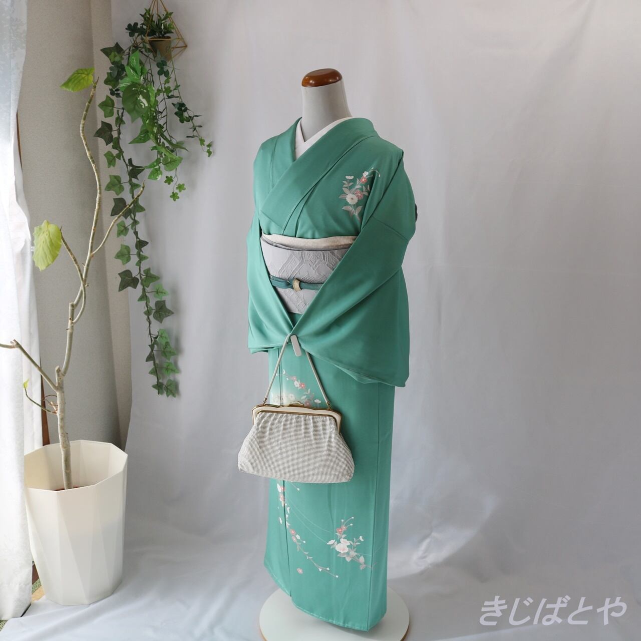 爽やかで上品な色が美しい、正絹の付け下げです。紋は入っておりません。