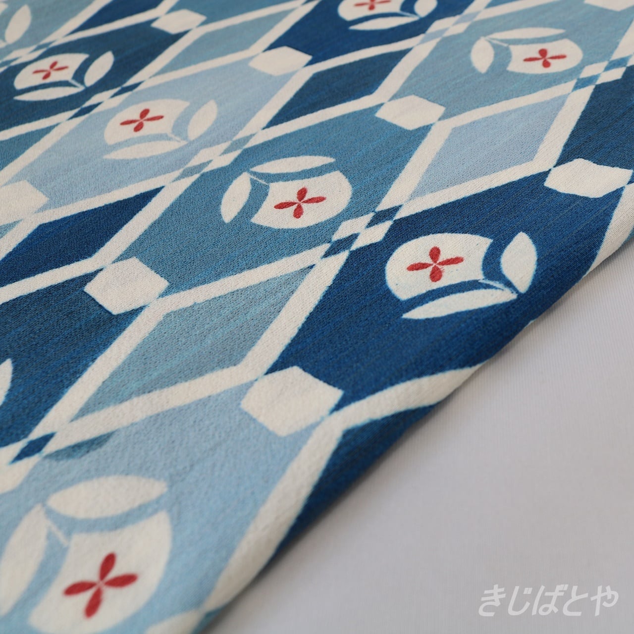亀甲つなぎに花があしらわれているのですが、少しレトロな洋風の柄のような印象で、いつものコーデを変えてくれそうな色柄です。