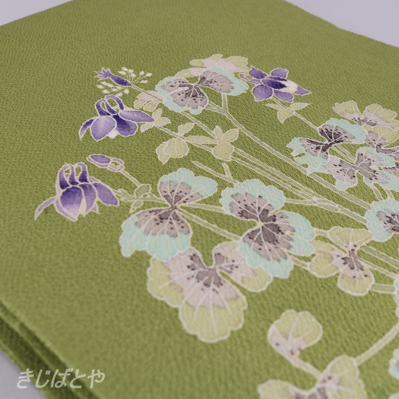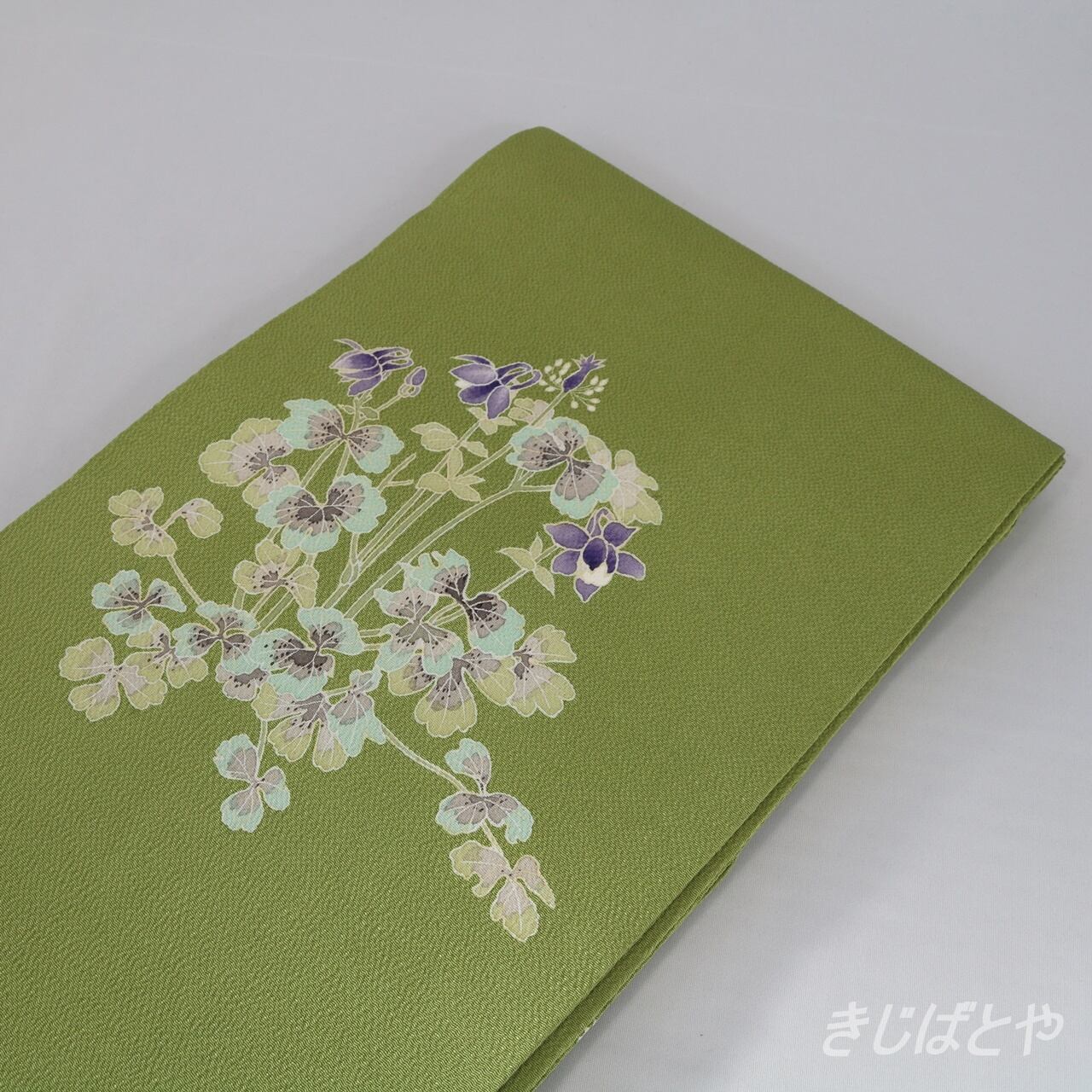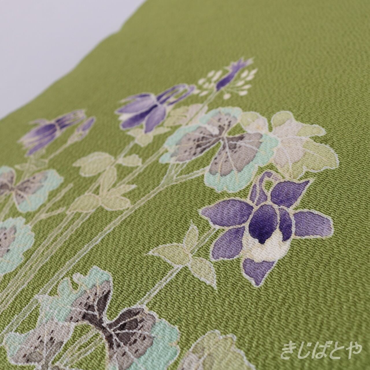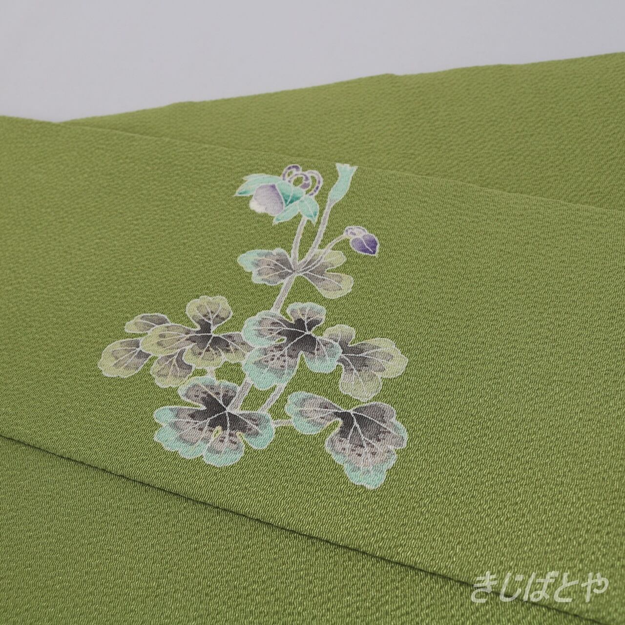 正絹ちりめん 柳色におだまきのなごや