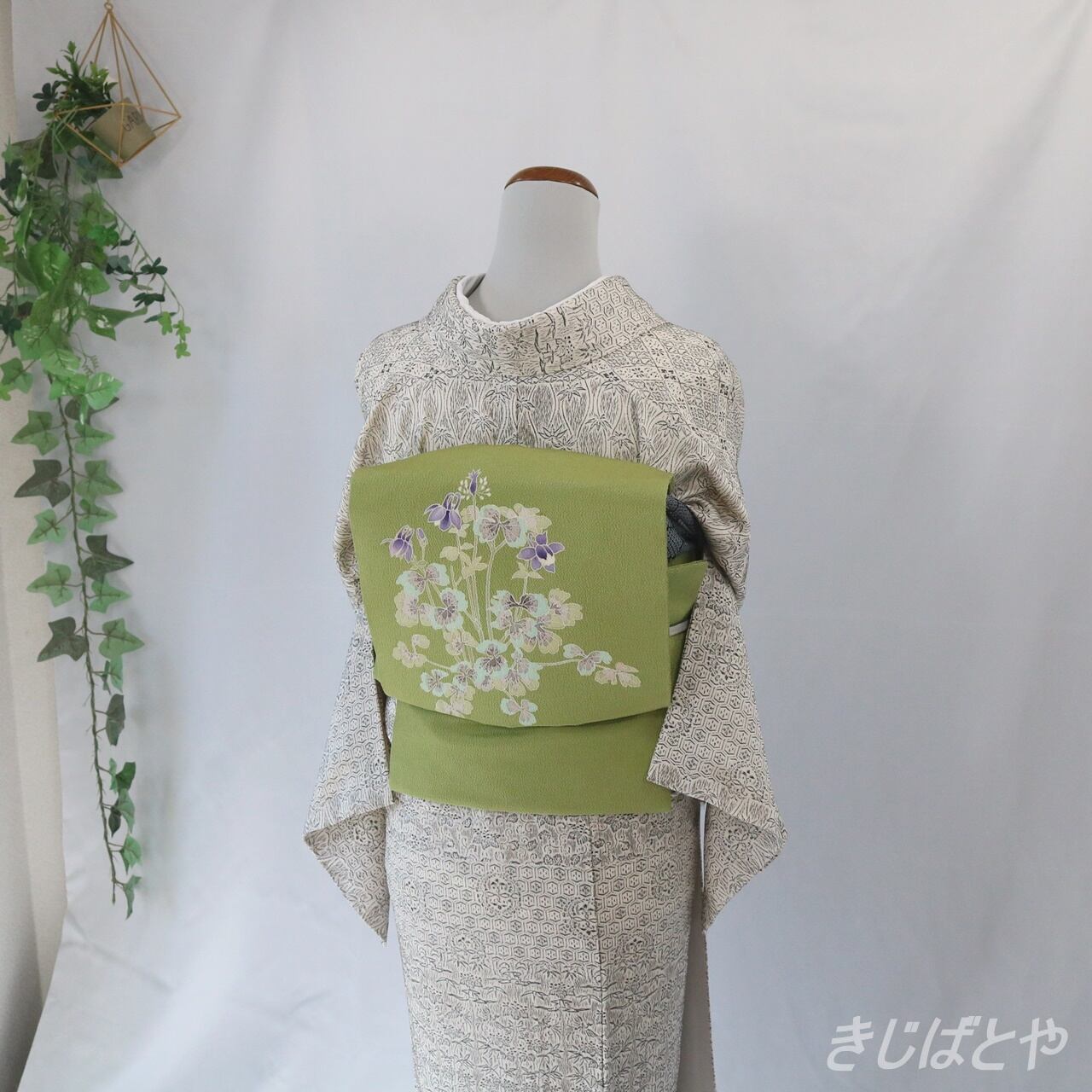 緑系の帯はあまり数がないのですが、こちらのようなやわらかな色みだと着物とも合わせやすく、個性はあるのに主張は強くなく、重宝する一本になってくれそうです。