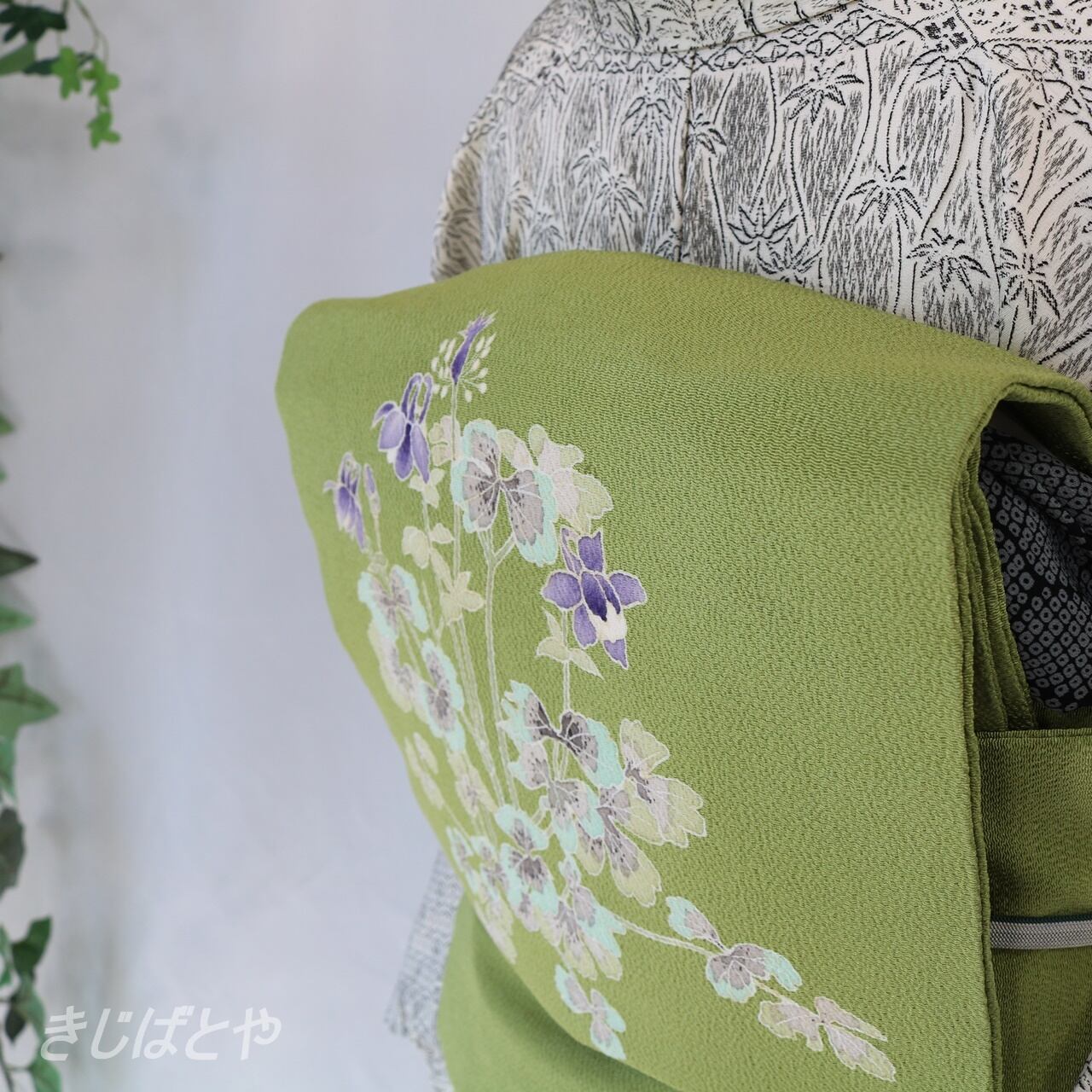 地は柳色(やなぎいろ:渋い黄緑)で、やわらかで優しい色みです。