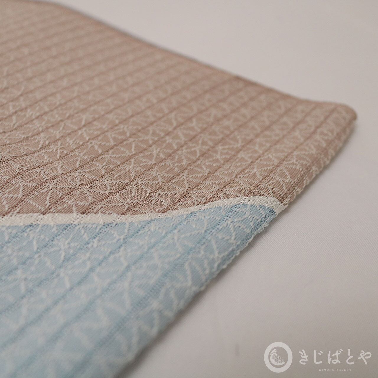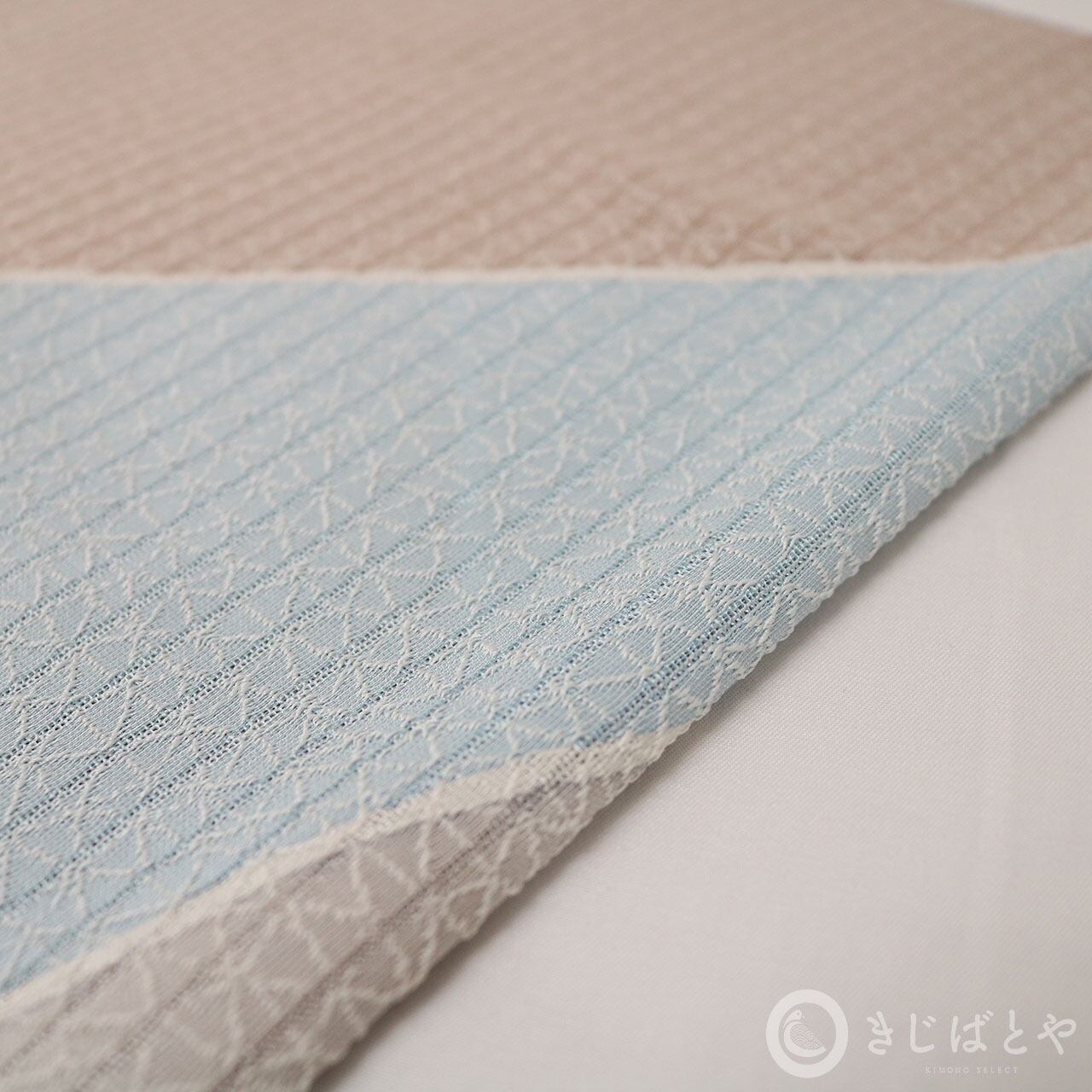 やわらかで優し気な色の上に霧氷を思わせるような地織りが重なり、やわらかな陰影をつくっています。