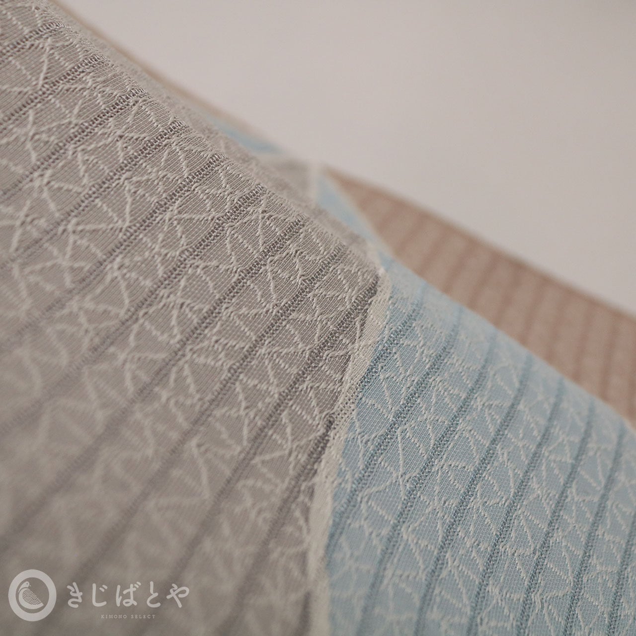 地は橡鼠(つるばみねず:橙みの暗い灰)で、薄鼠(うすねず:明るい灰)、淡い水色の切り替えになっています。