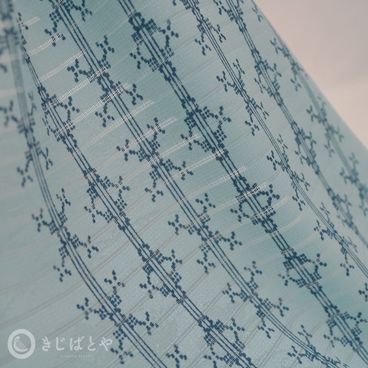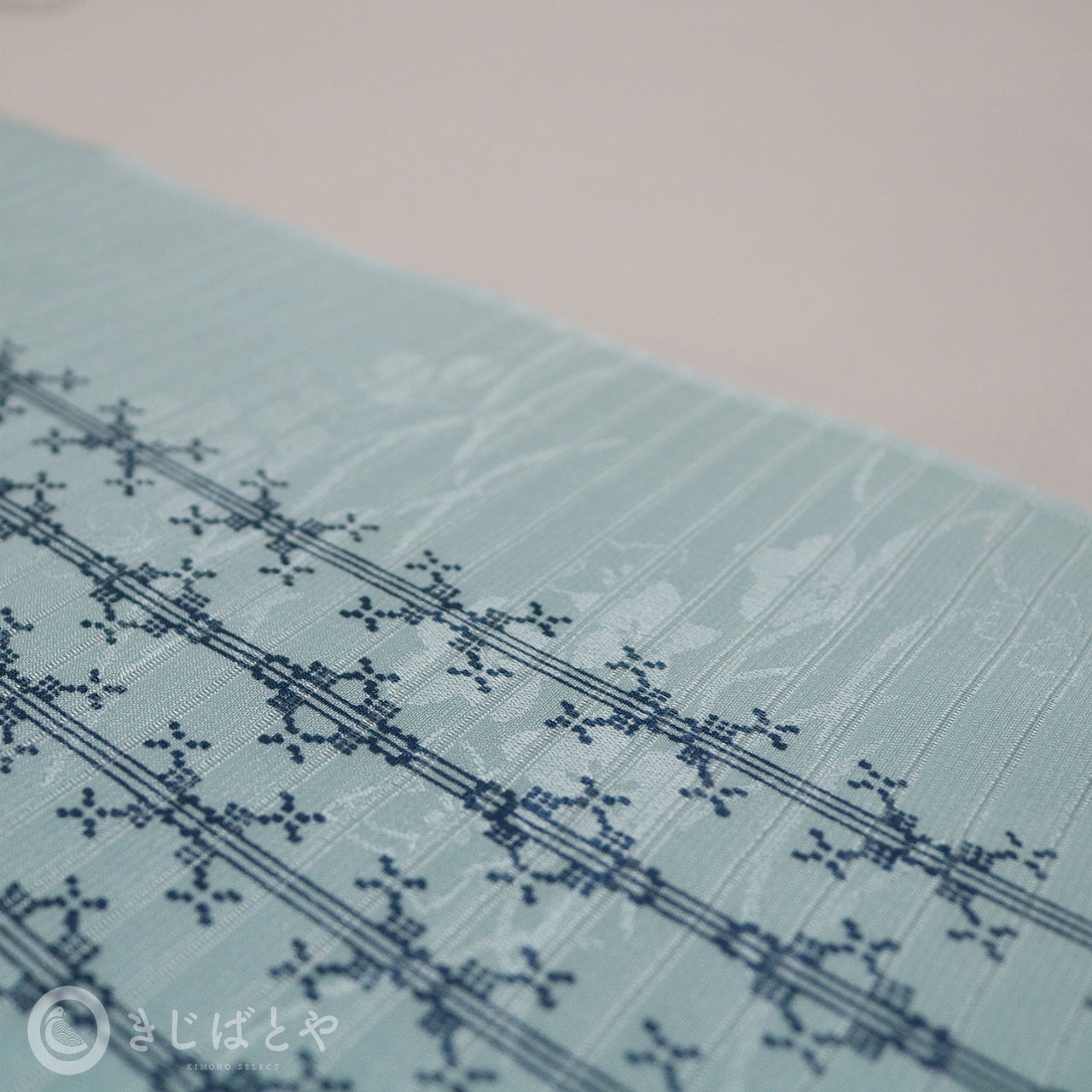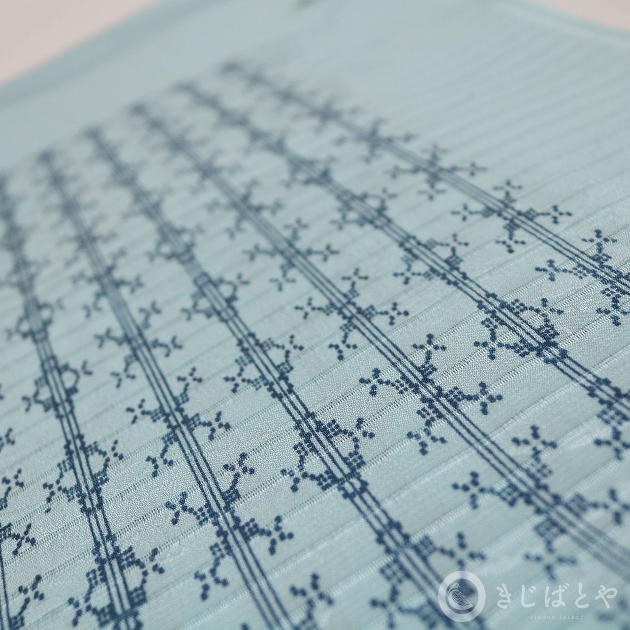 冬の早朝に窓についた霜の結晶を感じるような涼しげな柄ゆきが、とても美しいです。