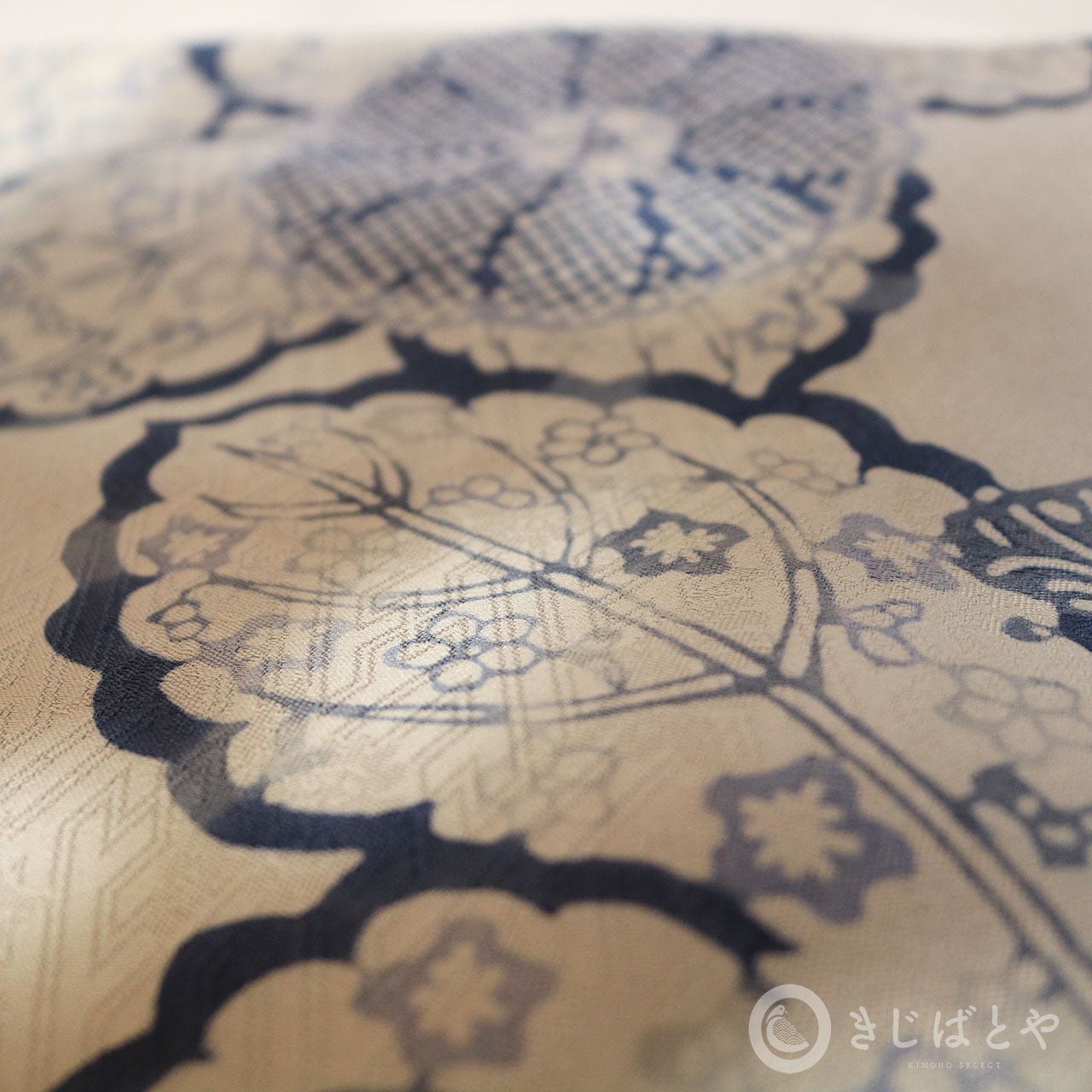 地は雲居鼠(くもいねず:明るい灰)で、藍の濃淡で柄が染められています。