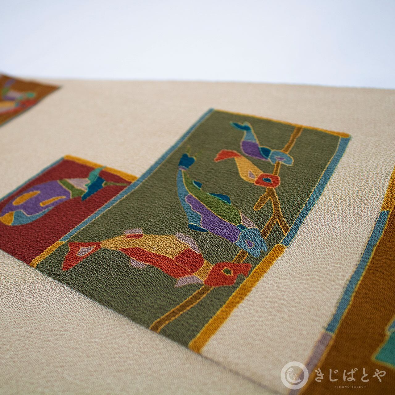色は渋めなのですが、ところどころの色みがきれいでアクセントになっており、民芸調の柄にはめずらしい、かわいらしくユニークな雰囲気があります。