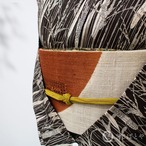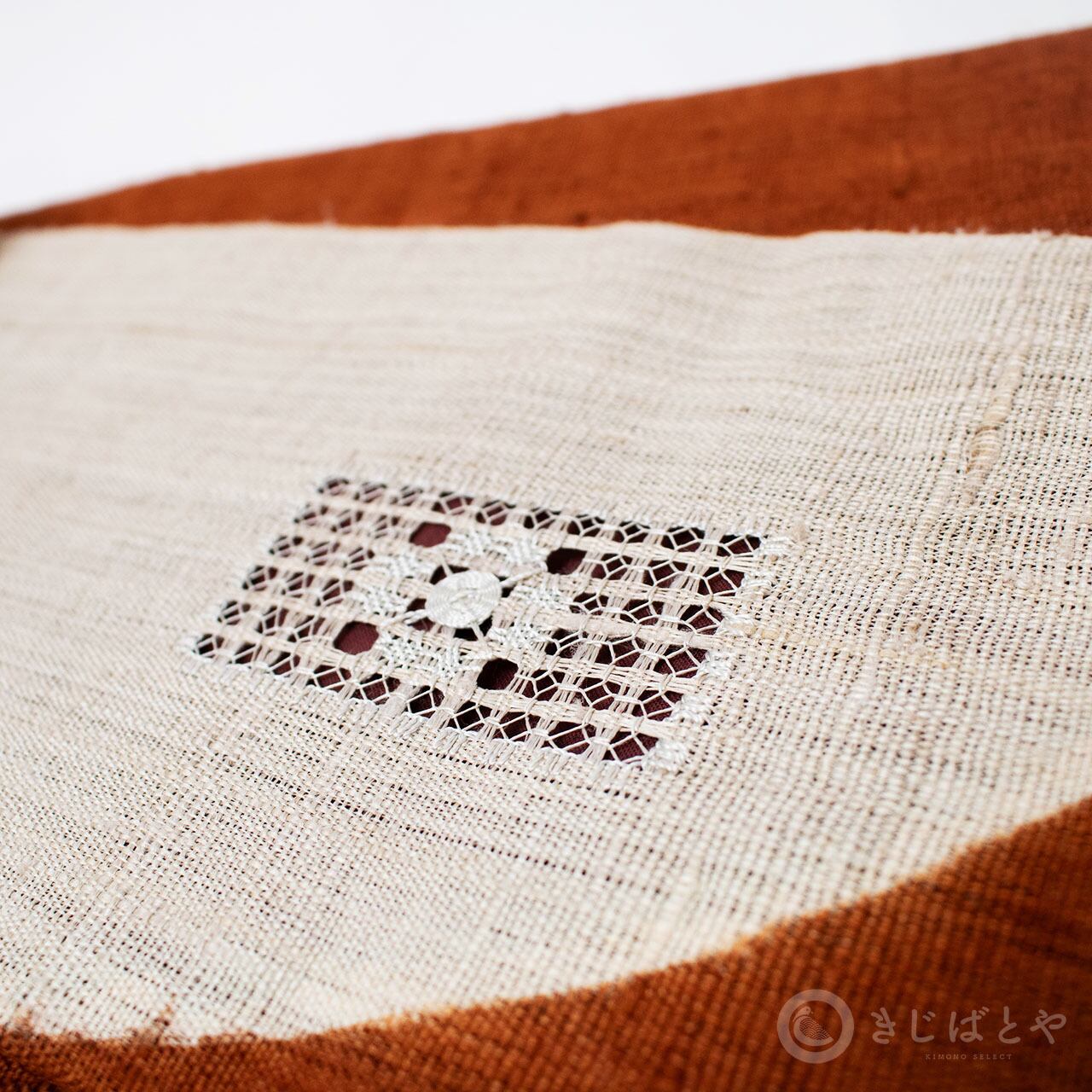 地は濃柿(こいがき:暗い橙)と蕎麦切色(そばきりいろ:橙みの明るい灰)の切り替えで、ドローンワーク刺繍がほどこされています。