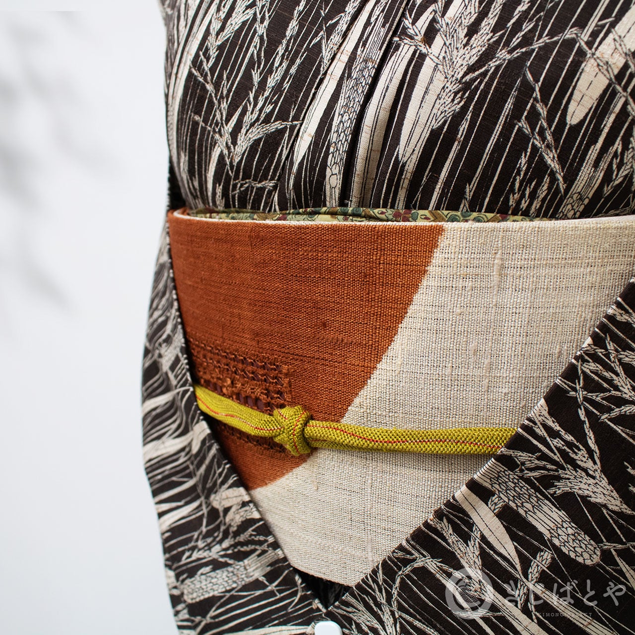紬ですが少し軽やかさも感じる帯で張りがあり、締めやすく、お太鼓のかたちも決まりやすいです。