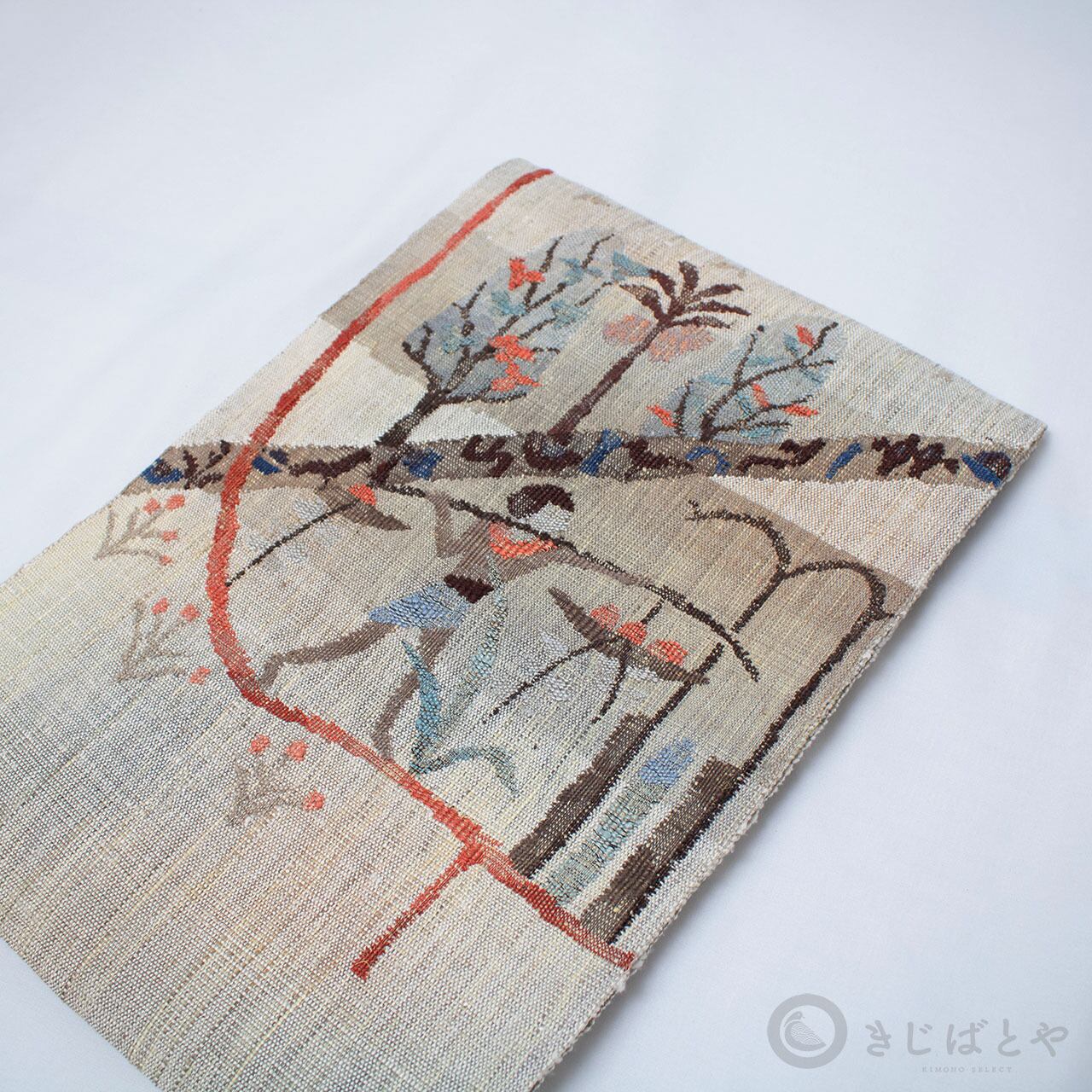 柄はエジプト柄でしょうか、けれど外国の絵本のような趣もあり、エキゾチックな雰囲気とかわいらしい印象ともあり、なんとも不思議な魅力に満ちた帯です。